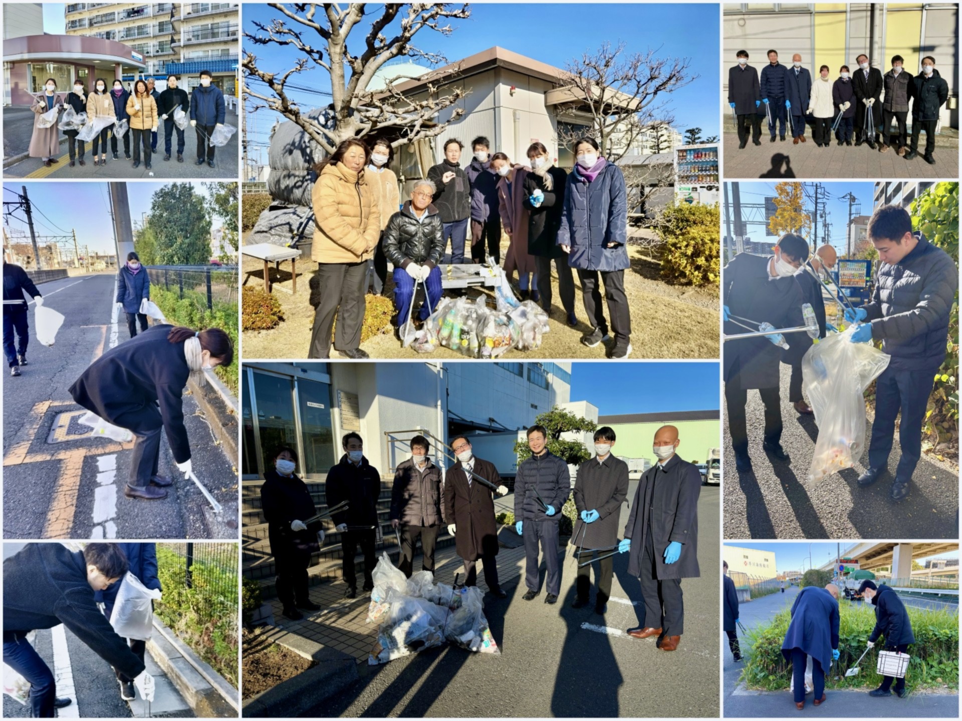 川越センターは9名、横浜南センターは10名参加し、会社周辺や最寄り駅周辺のごみを拾いました。